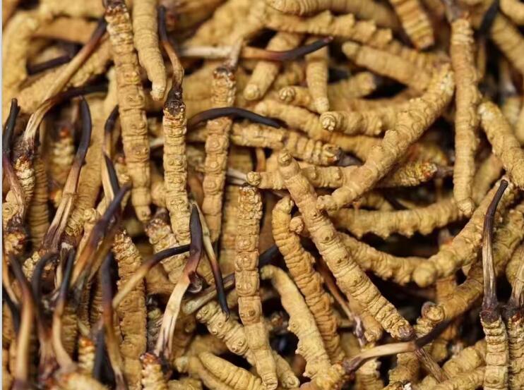涼山蟲草:蟲體較長。有3-6厘米,表面棕褐色,蟲足不明顯。草部細長,有10-30厘米,直徑較細,呈黃棕色至黃褐色。少數(shù)草部頂端有分支。