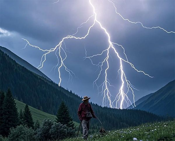 蟲(chóng)草生長(zhǎng)區(qū)域多位于海拔3000米以上的高原草甸或高山峽谷,地勢(shì)開(kāi)闊且植被稀疏。這類環(huán)境雖適合蟲(chóng)草生長(zhǎng),卻也成為雷電災(zāi)害的“高危區(qū)”。雷電發(fā)生時(shí),人體因缺乏遮蔽物極易成為電流導(dǎo)引目標(biāo),瞬間釋放的高壓電流可導(dǎo)致嚴(yán)重傷亡。因此,采挖者需對(duì)山區(qū)天氣的復(fù)雜性保持高度警惕。